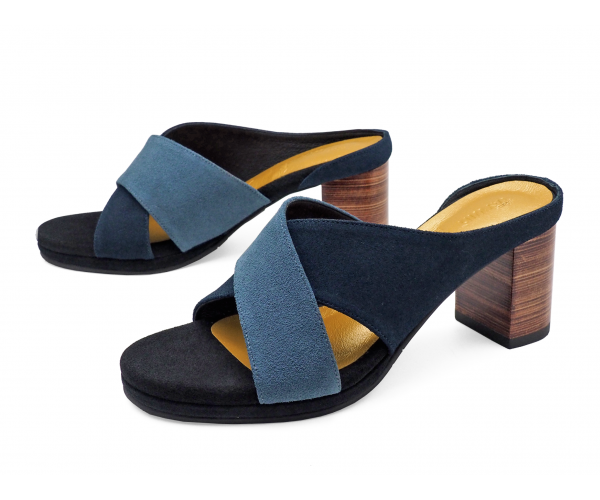 รองเท้าแตะ HSC-97 หนังกลับน้ำเงินสด-กลับเขียวมิ้นต์