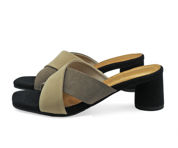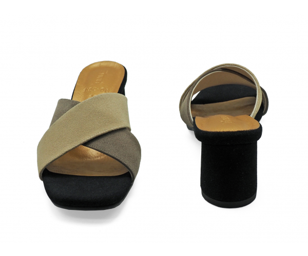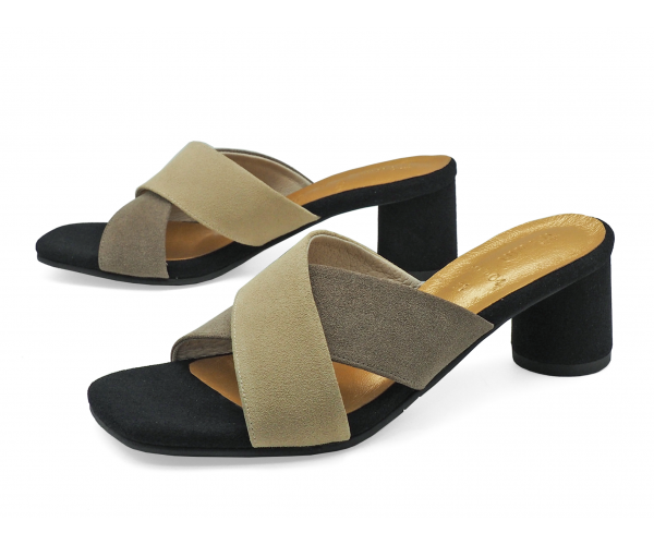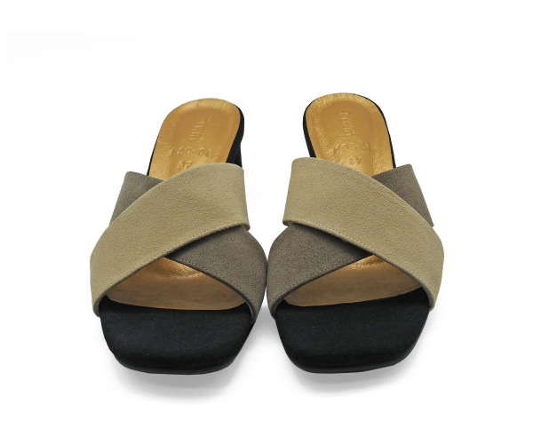 รองเท้าแตะ HSC-04 หนังกลับเบจ-กลับกากี