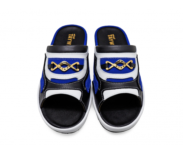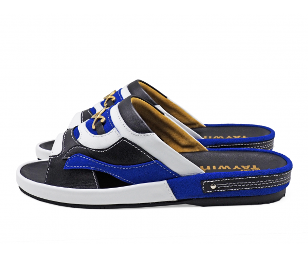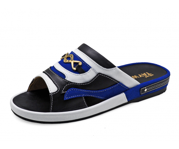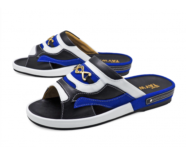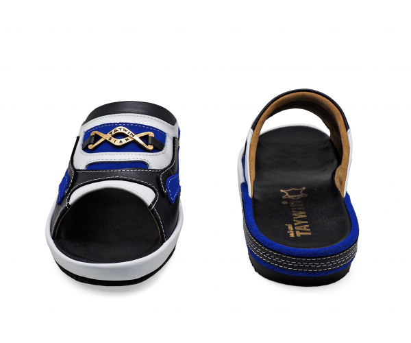 รองเท้าแตะ SKF-37 หนังนิ่มดำ-กลับน้ำเงิน-นิ่มขาว