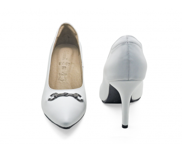 รองเท้าคัทชูส้นสูง SV-07 หนังนิ่มขาว