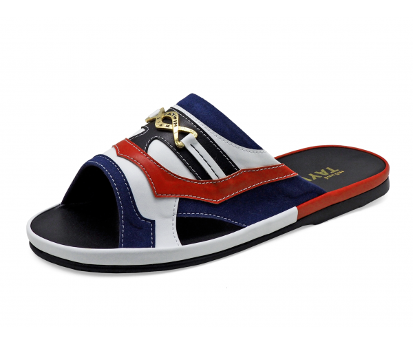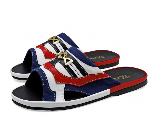 Men Sandals SKF-39 Navy Suede-White-Red Nappa Microfiber Leather