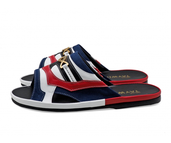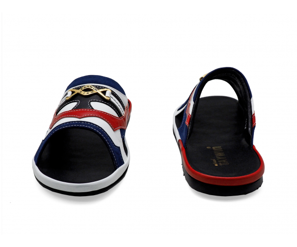 Men Sandals SKF-39 Navy Suede-White Corrected Grain-Red Nappa Microfiber Leather