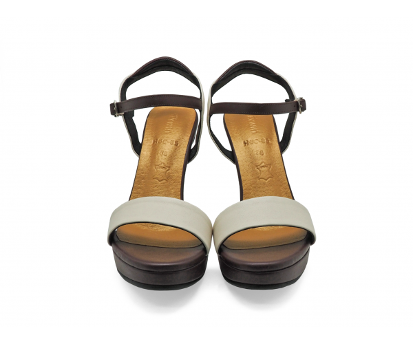 Women Sandals High Heel HSC-85 Cream sheep leather-Brown Nappa